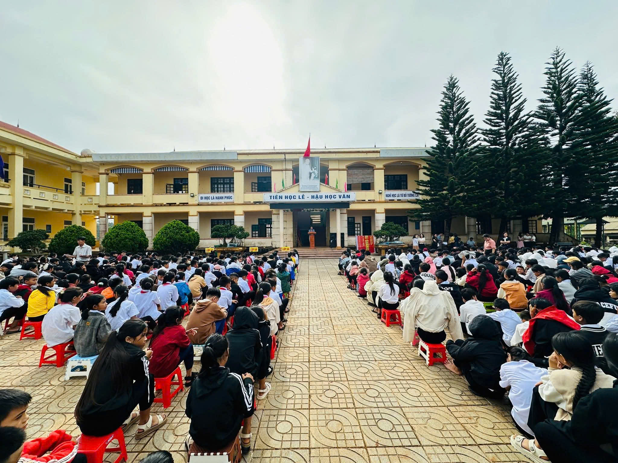 Ảnh sinh hoạt dưới cờ tại Trường PTDTBT TH&THCS Hướng Phùng, vùng biên giới phía tây tỉnh Quảng Trị