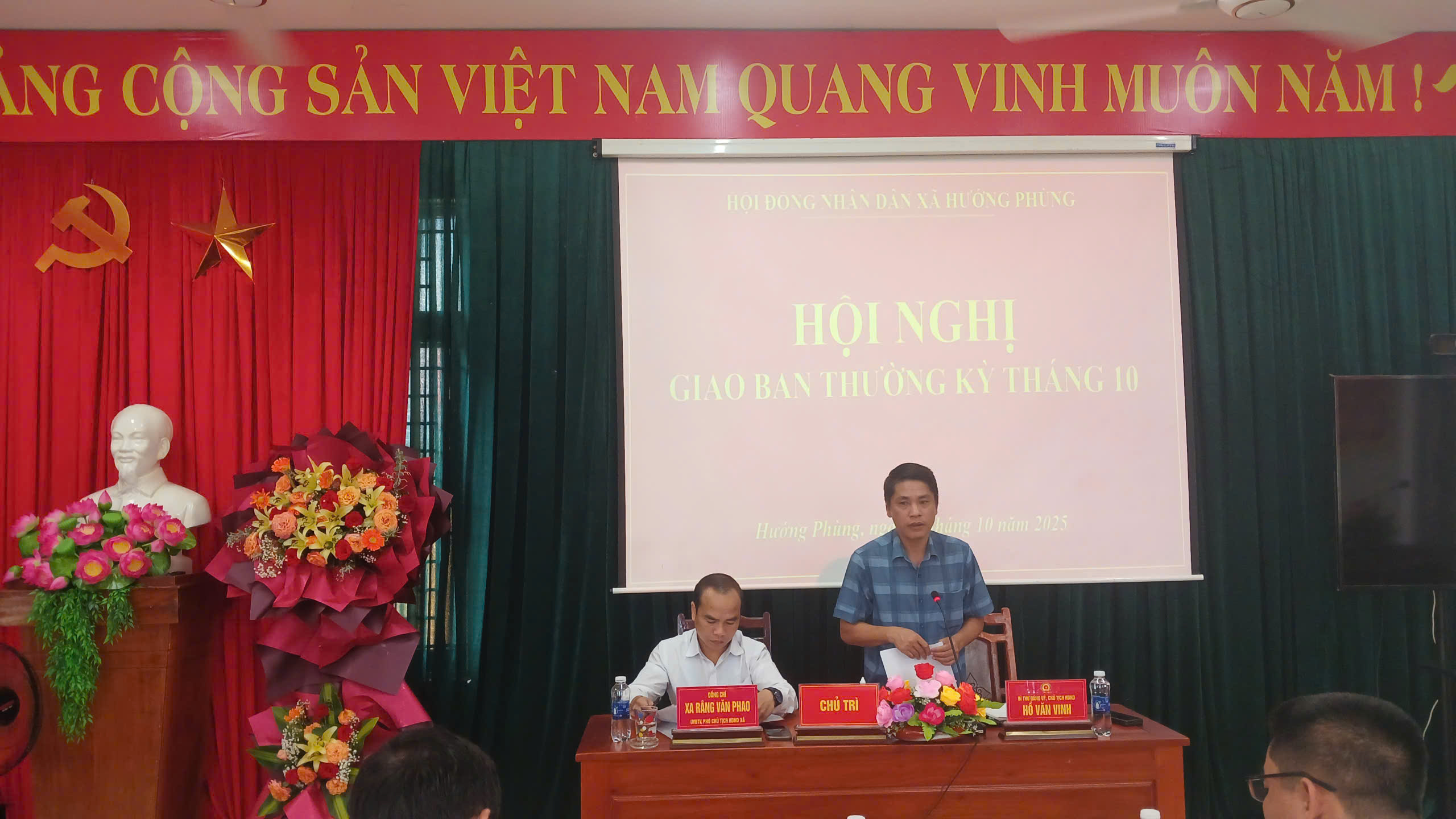 Kết luận của đồng chí Chủ tịch HĐND xã Hồ Văn Vinh tại Hội nghị giao ban thường kỳ tháng 10/2025 của Thường trực HĐND xã Hướng Phùng
