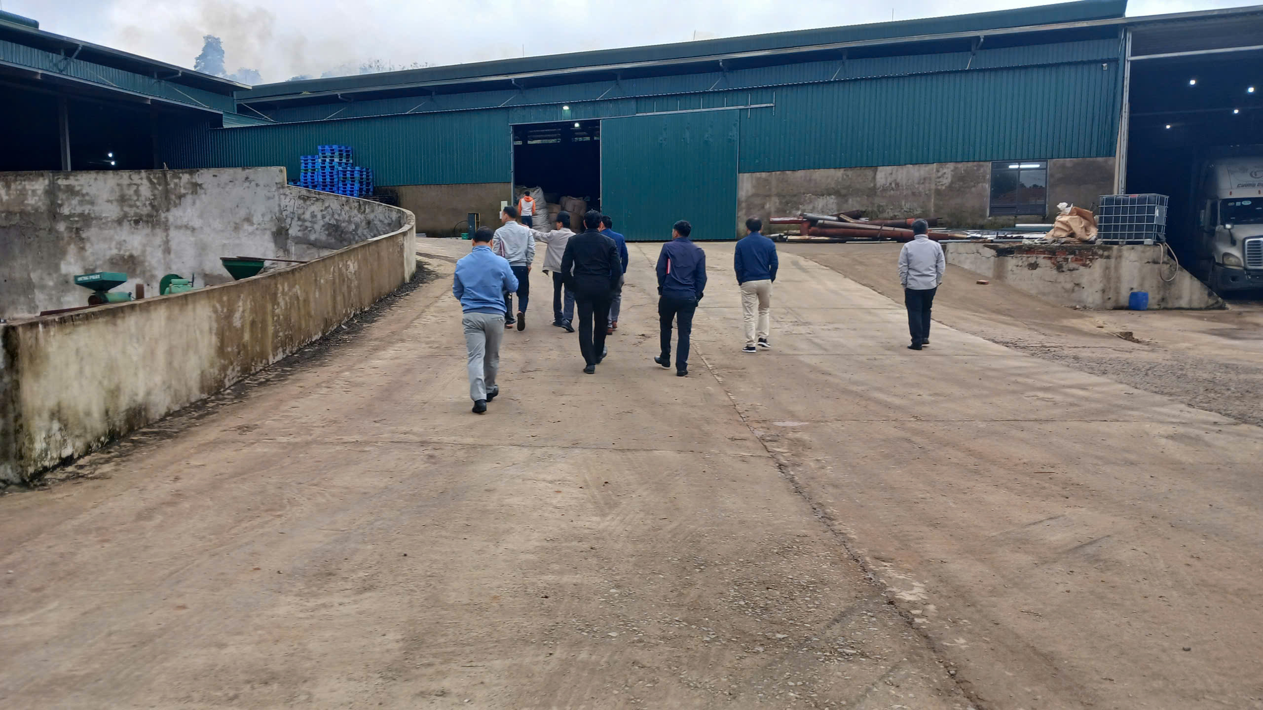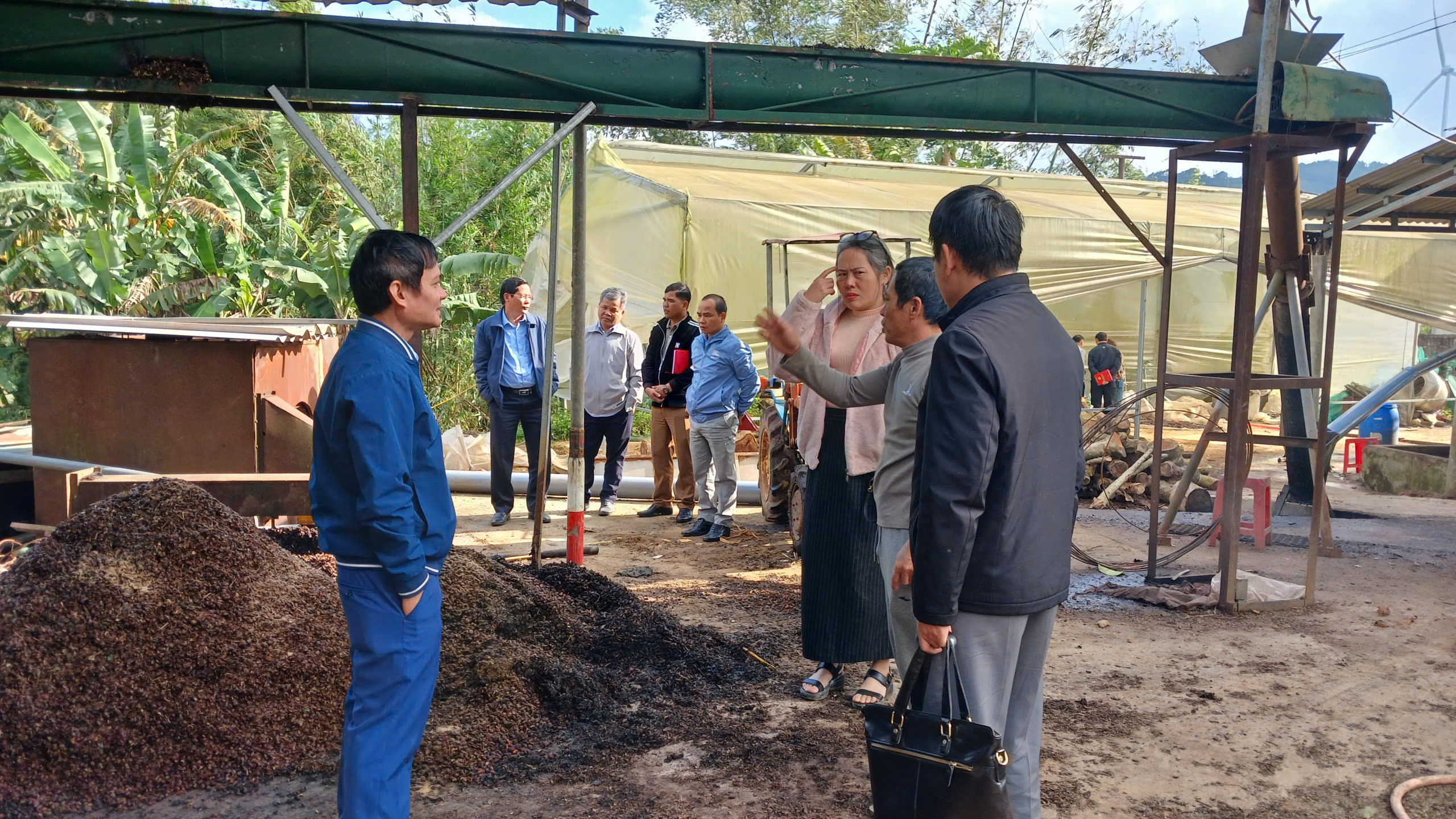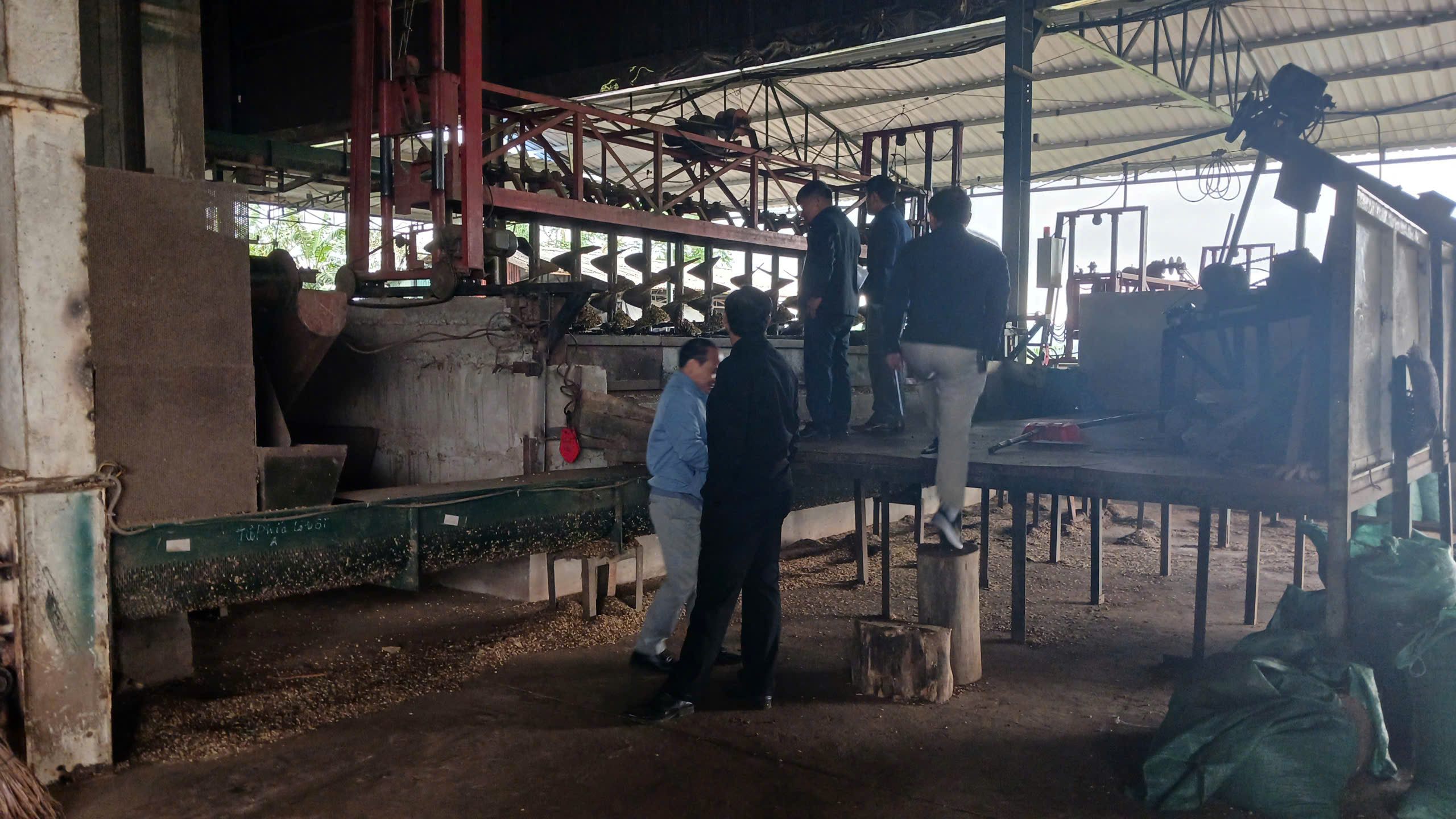 Đoàn giám sát kiểm tra tại phân xưởng sản xuất tại nhà máy chế biến cà phê Đình Tàu, thôn Cợp, xã Hướng Phùng