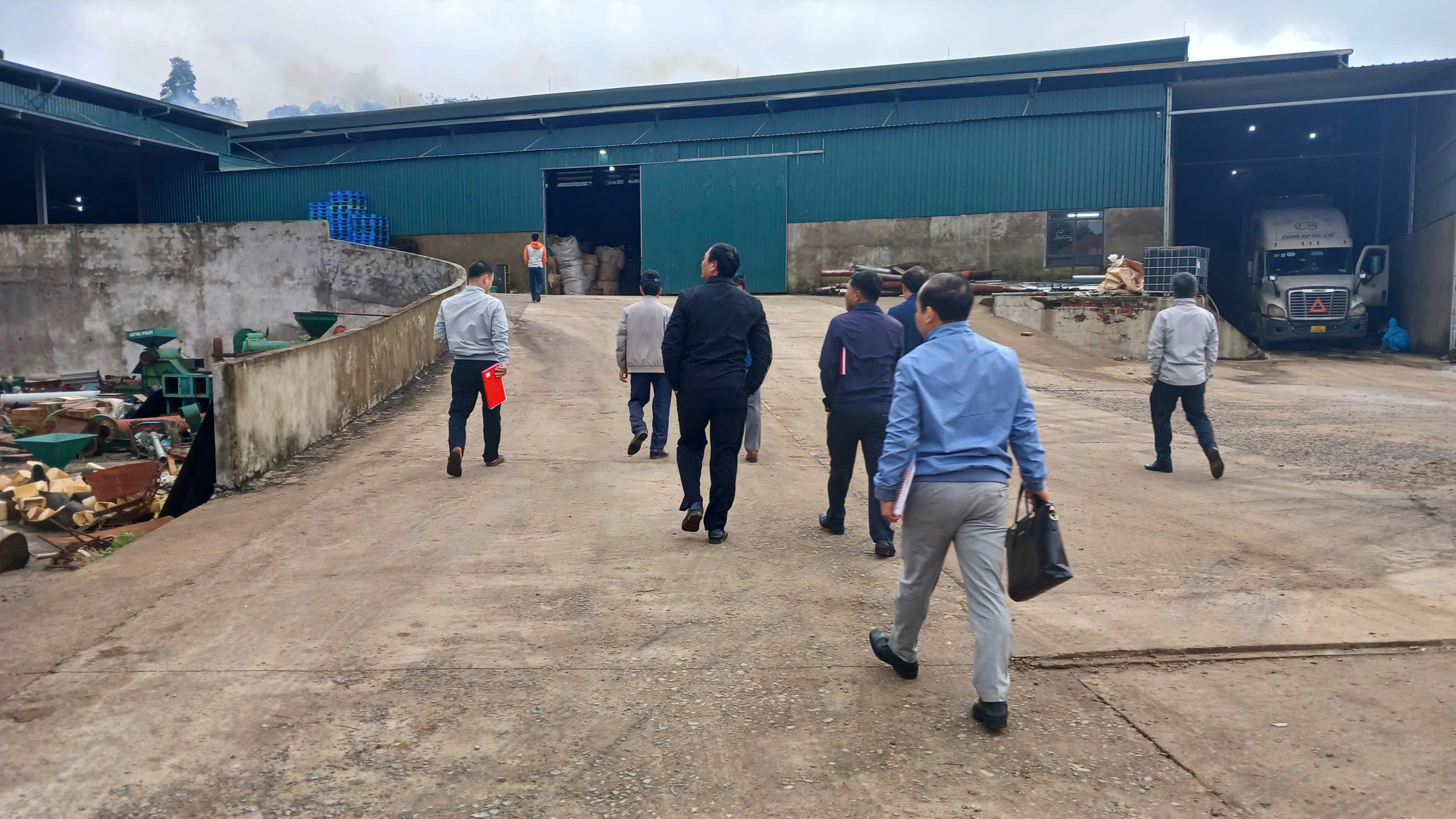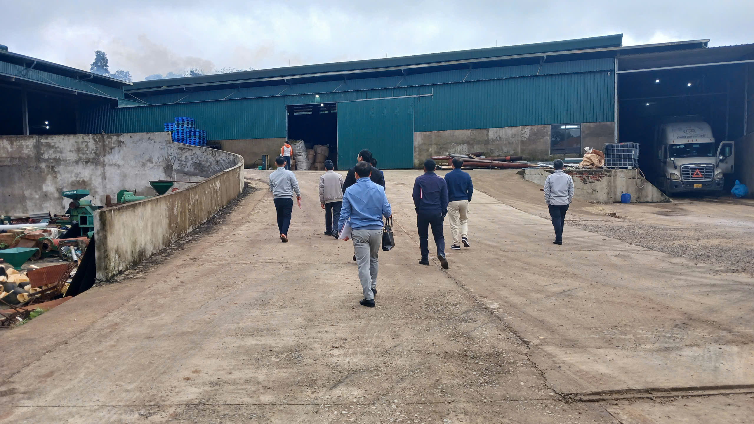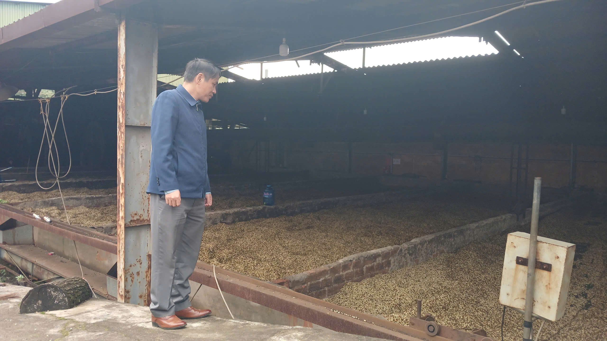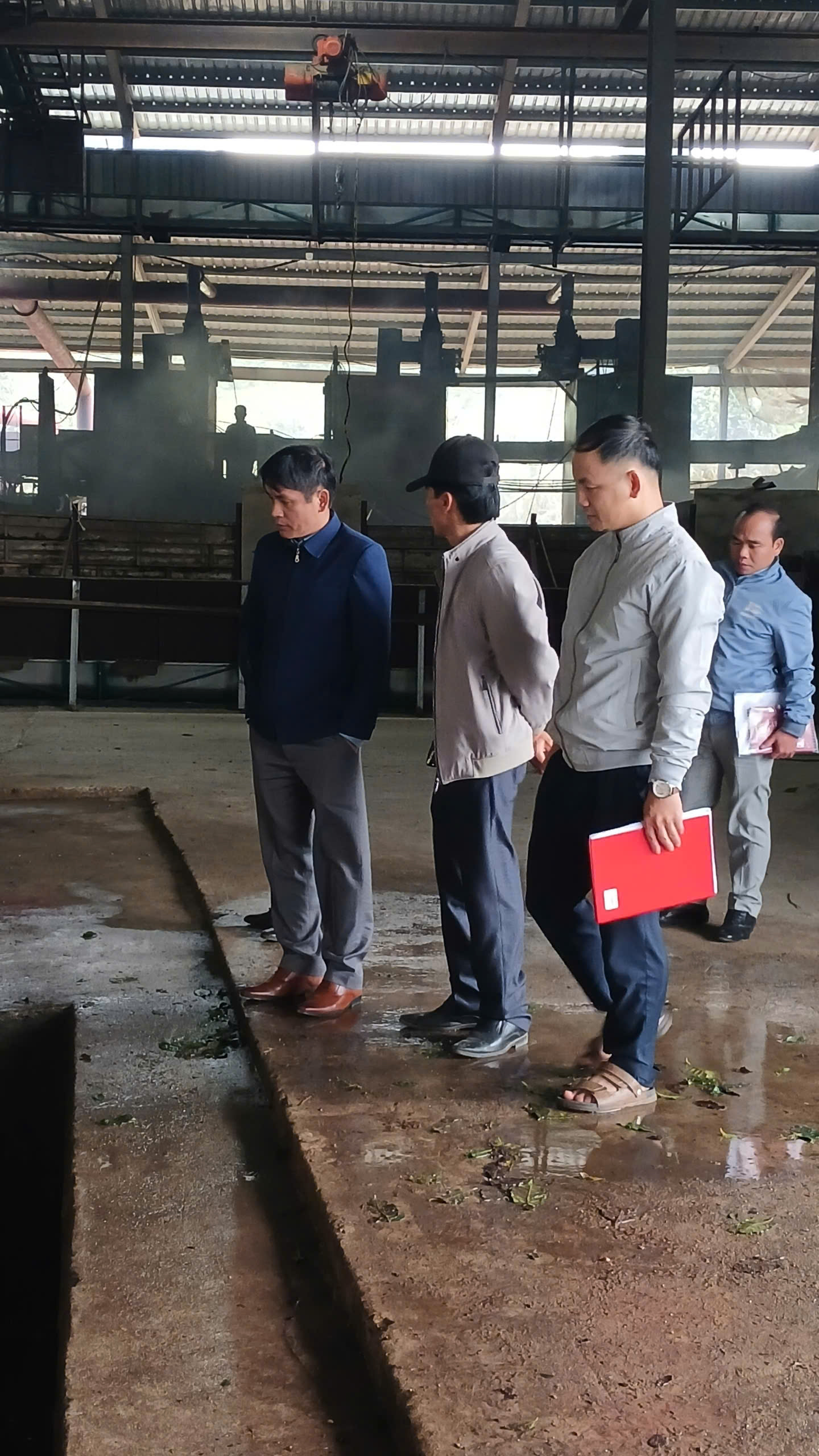 Đoàn giám sát kiểm tra tại phân xưởng sản xuất tại nhà máy chế biến cà phê Đình Tàu, thôn Cợp, xã Hướng Phùng