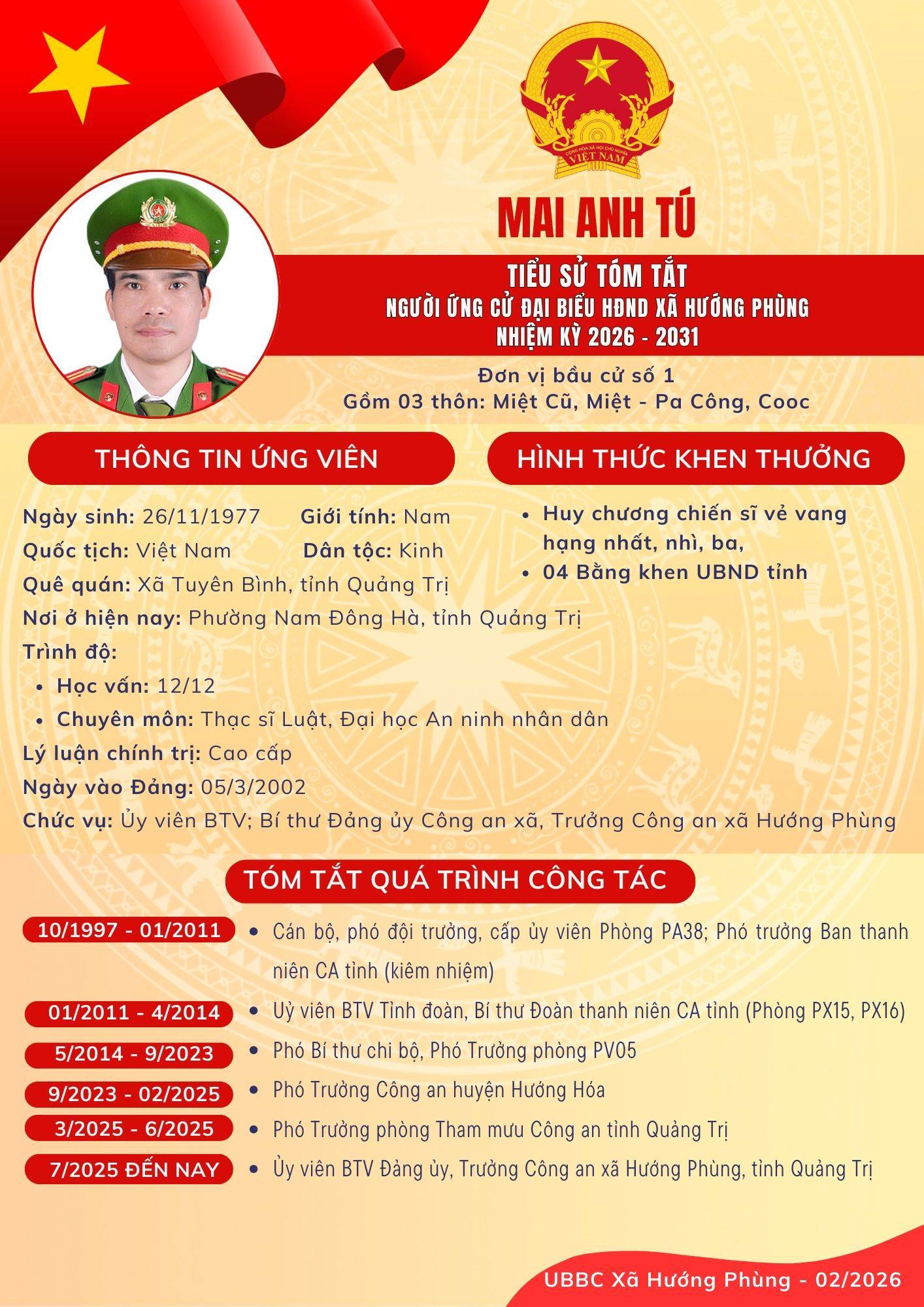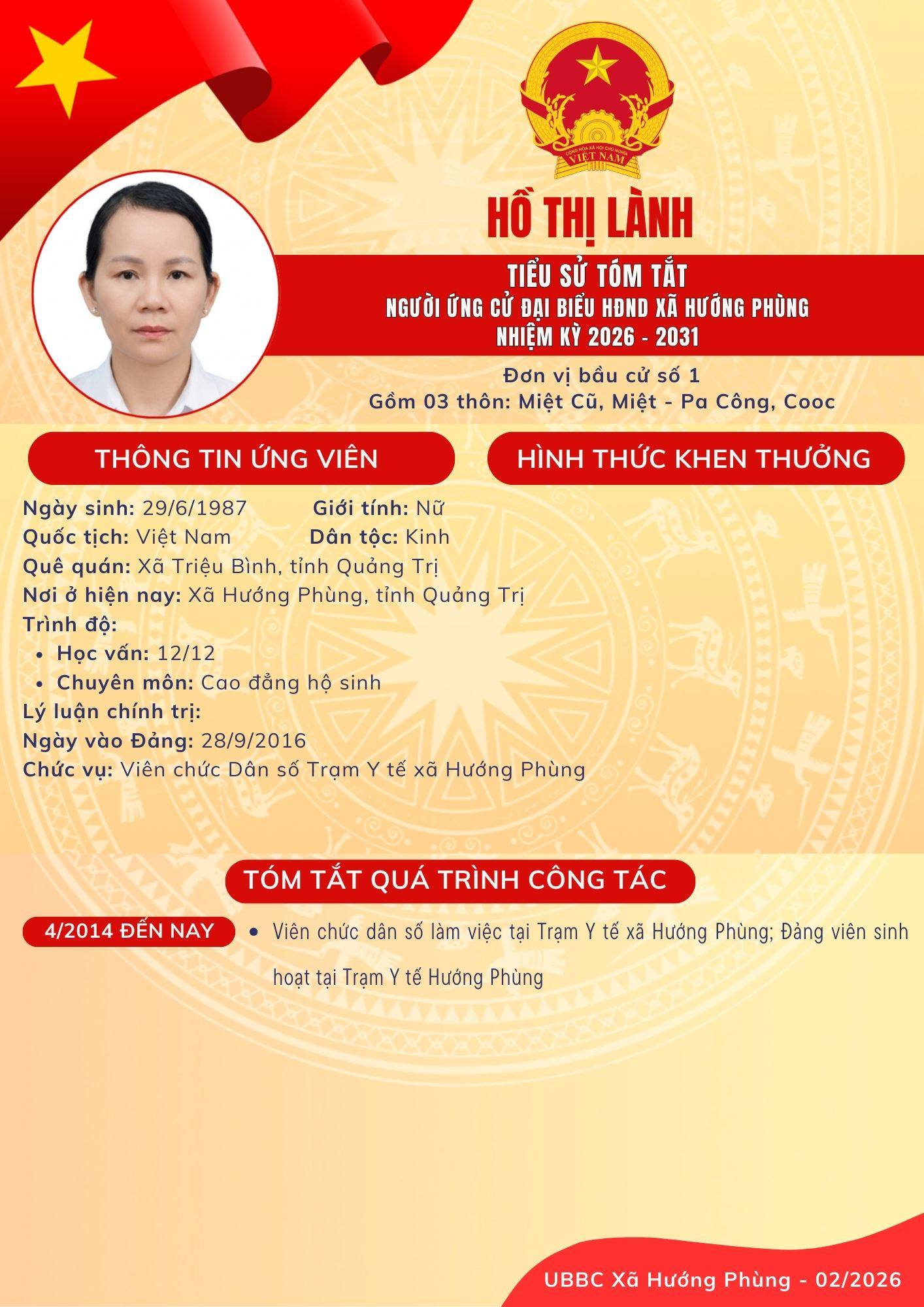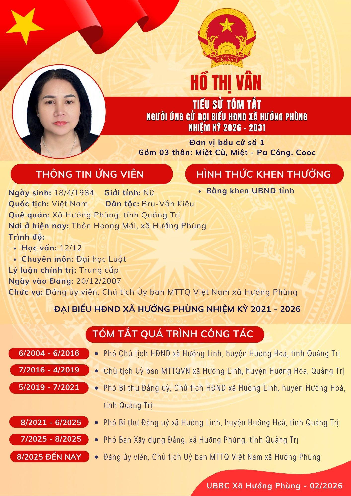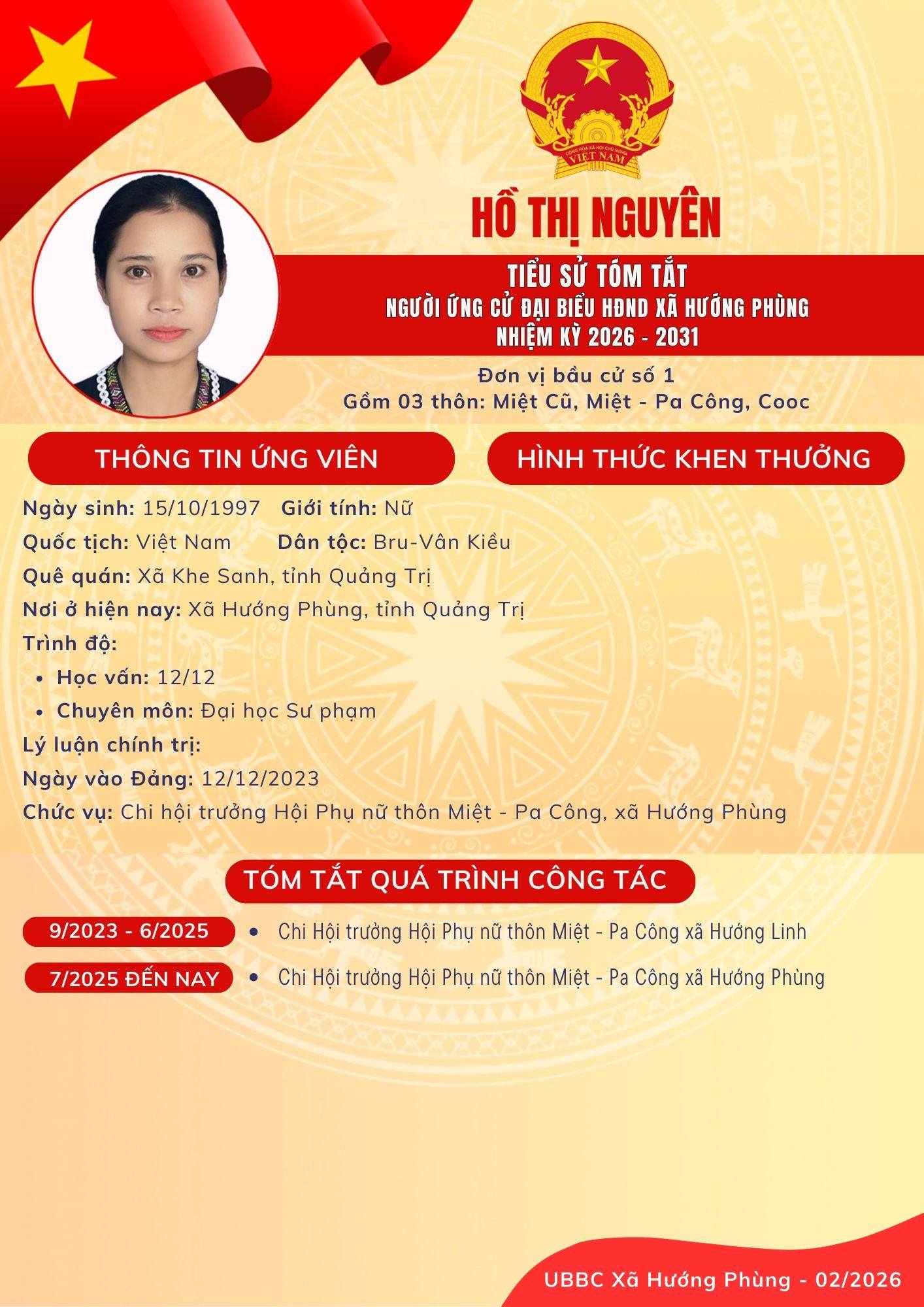 Danh sách chính thức ứng cử Đại biểu HĐND xã Hướng Phùng khoá XIII, nhiệm kỳ 2026 - 2031 - Đơn vị bầu cử số 1, gồm 03 thôn: Miệt Cũ, Miệt - Pa Công, Cooc