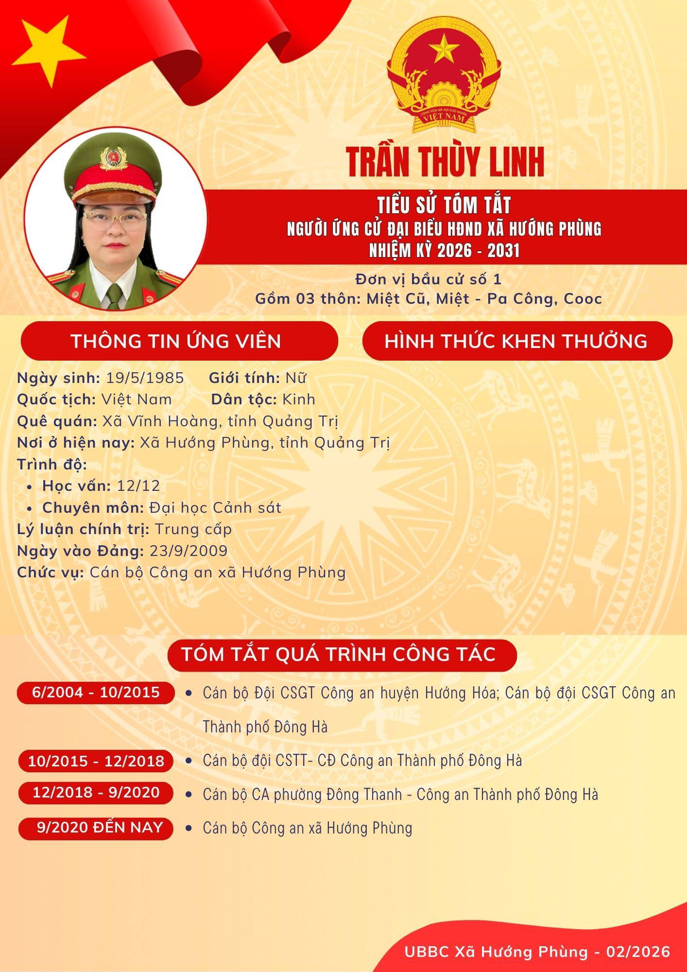2. Bà: Trần Thị Thùy Linh - Thiếu tá, Công an xã Hướng Phùng
