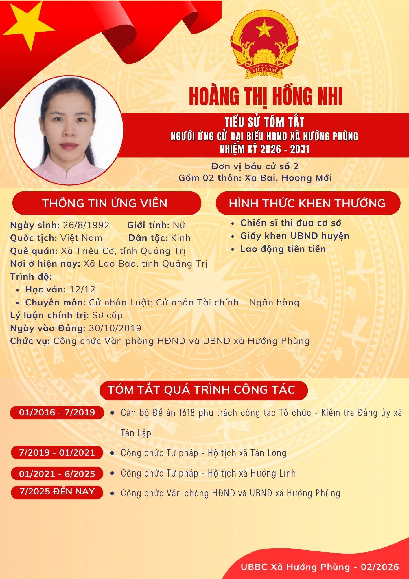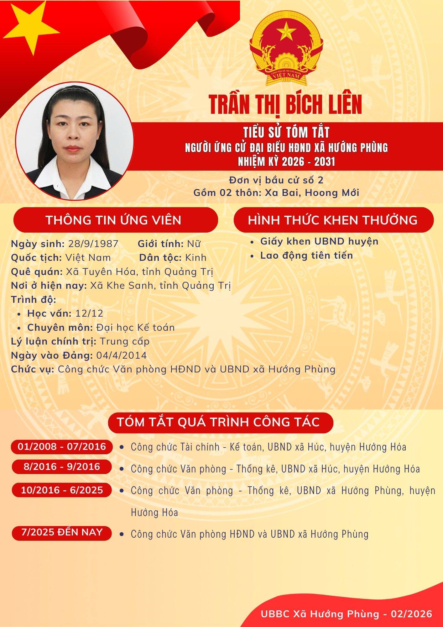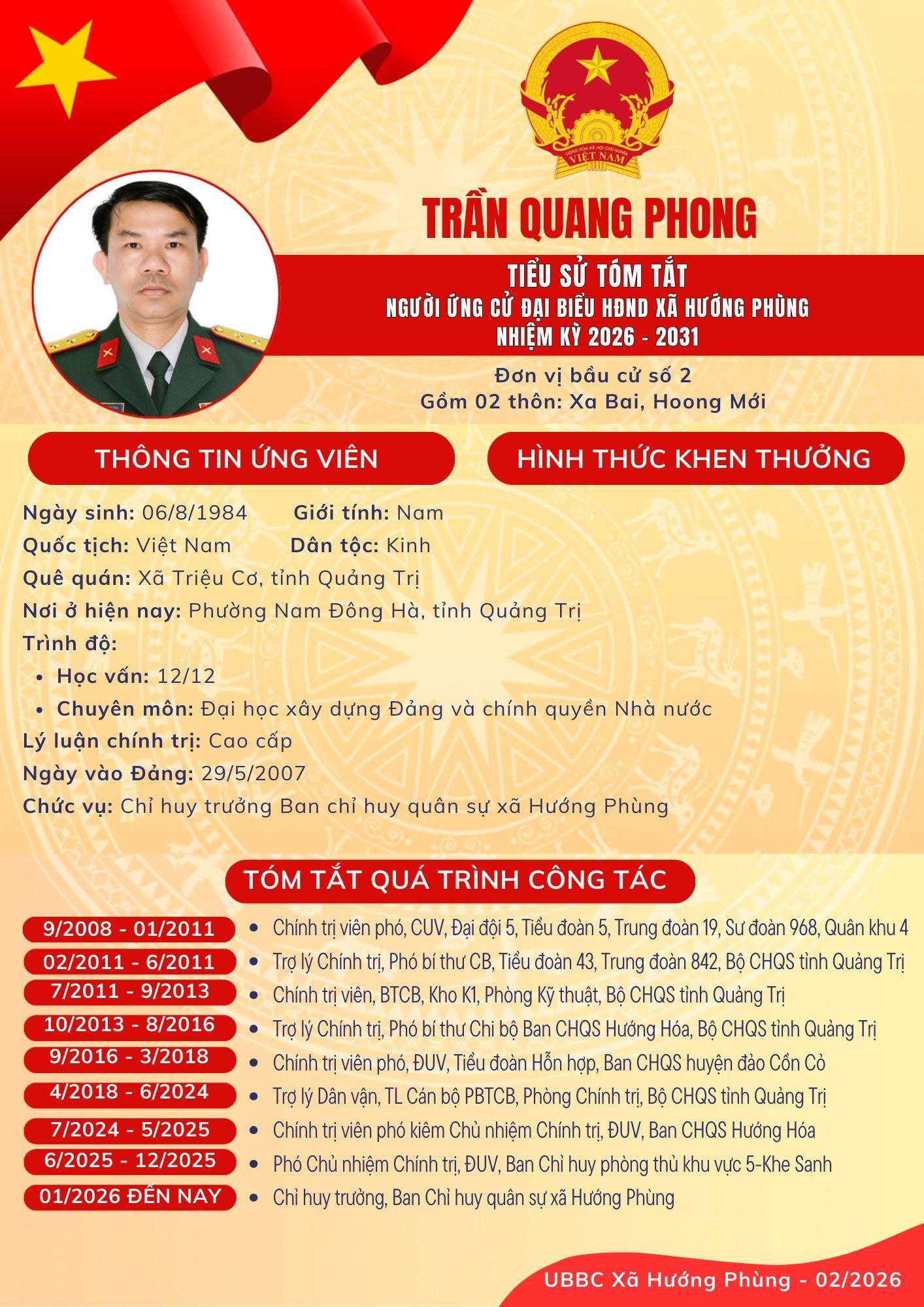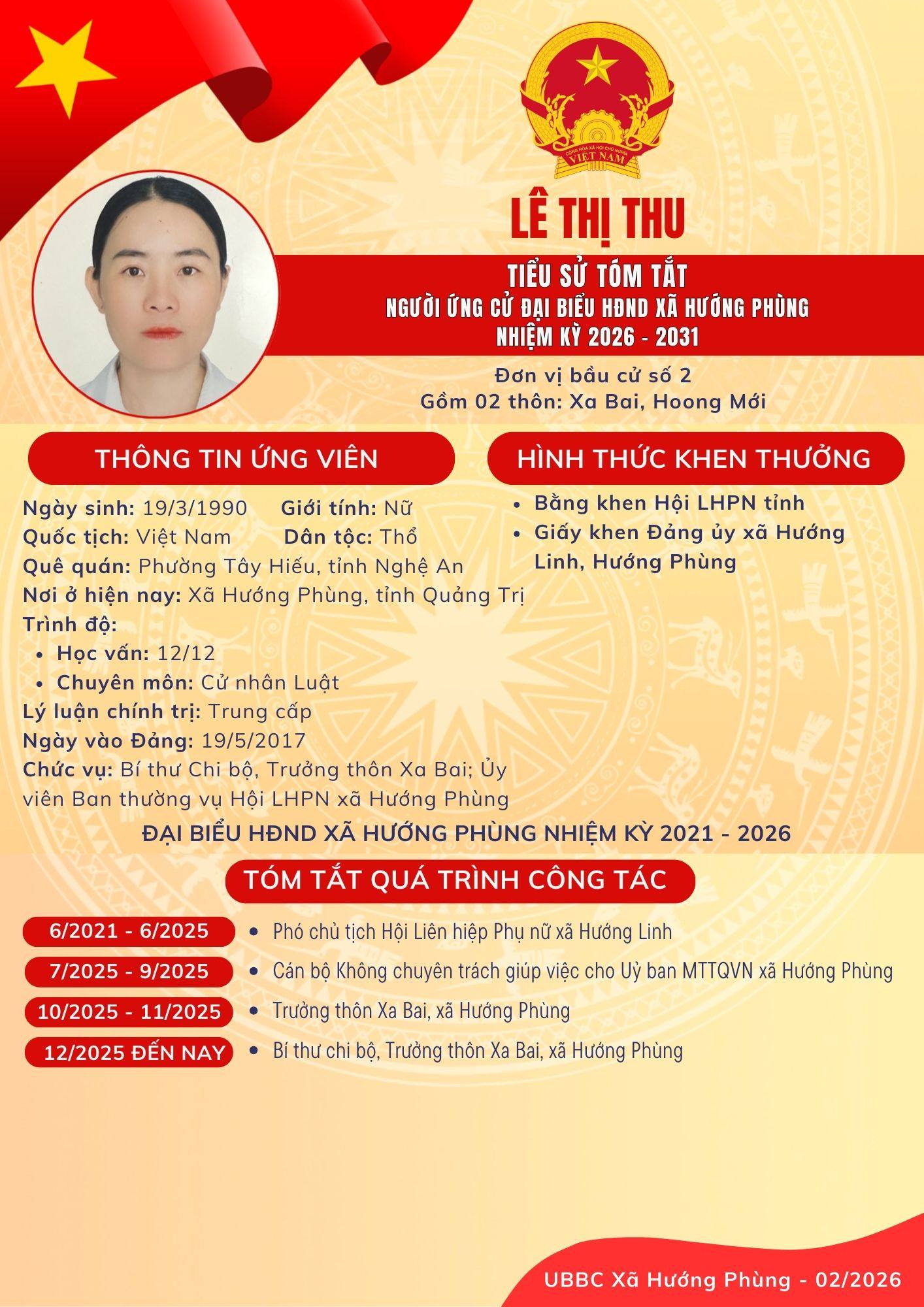 Danh sách chính thức ứng cử Đại biểu HĐND xã Hướng Phùng khoá XIII, nhiệm kỳ 2026 - 2031 - Đơn vị bầu cử số 2, gồm 02 thôn: Xa Bai, Hoong Mới.